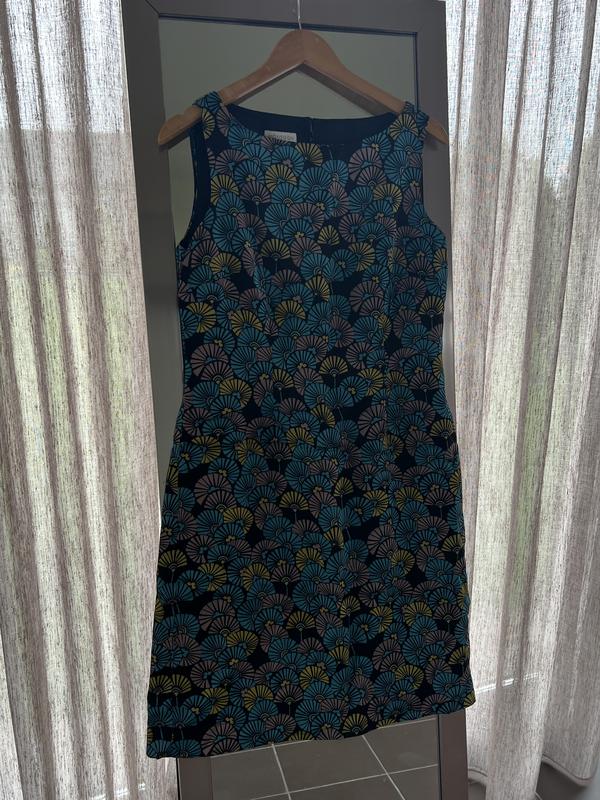 Платье с ярким принтом, застежка сбоку, и пуговица на спинке