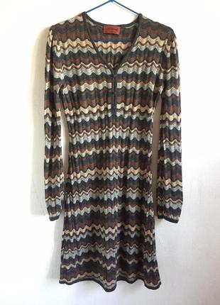 Платье Missoni, в Очень красивом состоянии, если не учитывать отсутствие бирки внизу где указан состав мотериала. Вероятно в составе материала смесь шерсти и акрила, но это догадка. Размер указан S. Замеры: плечи 41 см длина рукава 66 см длина платья 94 см полуобхват груди 41 см. Дополнительную информацию, фото - надеваю по запросу.