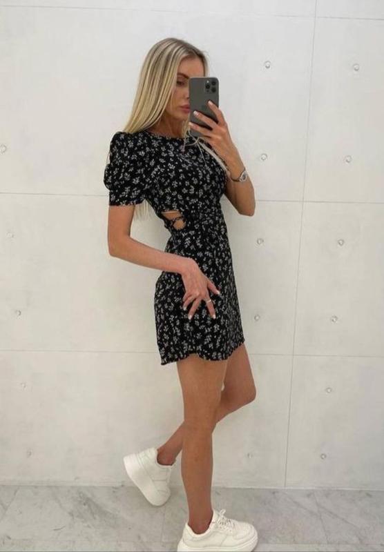 размер 42-44 ог 85-92 от 68-72( в талии еще регулируется за счет открытых участков и завязок) ос 90-96 Тканина: Софт принт Длина самого платья - 81 см P.s. состояние действительно новое, с биркой. Брала себе, но фасон и размер не собрался (