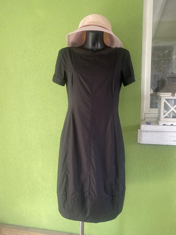 Стильное качественное черное платье от MAX MARA. Склад:котон-109/. На подкладке в тон, два кармана в боковых швах.Размер по наборке-40. Замеры:длина-100 см, ПОГ-44 см, ПОТ-39 см, ПОБ-48 см. Стан великолепен, лишь маленький нюанс-см. Последнее фото (треба аккуратно зашиты)