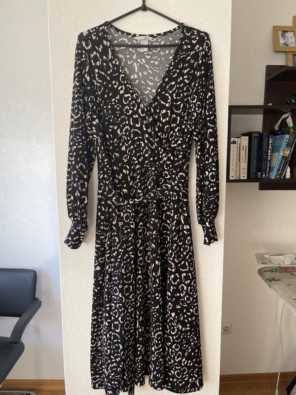 Шикарное женское платье,от пояса расклешенное,вырез-глубокий запах,длина-миди,р48,H&M