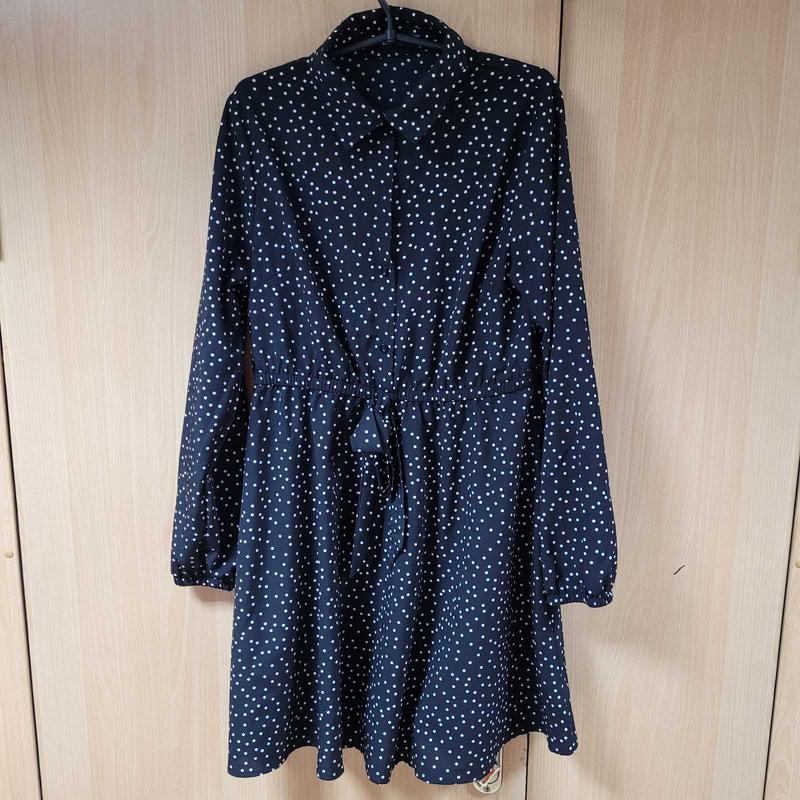 Платье с длинным рукавом, талия на резинке с завязкой, рукав внизу на резинке, чёрное в белый горошек. Новое, без бумажной этикетки.Люкс сток. Ог 106, талия 82+, Об 140, рукав 64, длина 96.