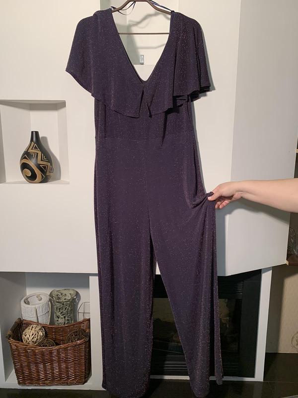 состояние новый с биркой известного бренда ткань люрикс отлично тянется брюки прямого кроя высокая посадка верх крвсивый V образный вырез ткань отлично тянется можно носить с поясом, чтобы подчеркнуть фигуру замеры пог 51+ пот 46+ поб ,57+ длина 43/110 низ 31