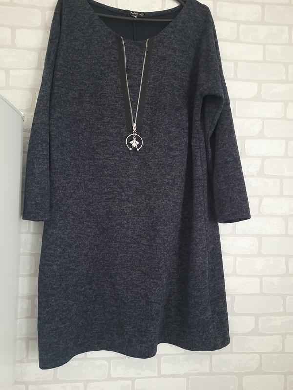 Платье,ровного кроя,темно синий меланж. размер 48-50.Длина 93 см,рукав 3/4.