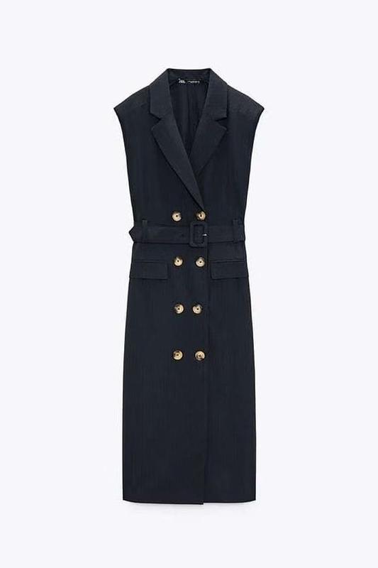 Платье без рукавов с воротником с лацканами и выраженными плечами. Передние карманы с клапанами. Ремень в тон с пряжкой на подкладке. Двубортная застежка на пуговицы спереди. 64% полиэстер · 32% вискоза · 4% эластан. Размер указан XL Ориентируйтесь на дополнительные детали замеров: по плечам 46см ( плечи открыты), по подмышкам от шва до шва 51см, ПОГ 49СМ, ПОТ 48см, ПОБ 59см, длина изделия 117см// все замеры выполнены в спокойном состоянии ( в составе ткани есть эластан поэтому имеет право на натяжение смело не критично +3,5-4см добавляйте) дополнительные детали замеров и фото спрашивайте Состояние нового изделия без бумажной бирки 🏷 и замечаний. УХОД Забота о одежде – это забота об окружающей среде. Стирка при более низкой температуре и деликатный отжим щадят одежду, помогая сохранить цвет, форму и структуру ткани. В то же время это снижает потребление энергии, которая используется в процессах ухода. Машинная стирка макс. Деликатный цикл 30°C/86°F Не использовать отбеливатель/отбеливатель. Гладить максимум 150°C/302°F Сухая чистка с использованием тетрахлорэтилена. Можно использовать сушилку при низкой температуре.