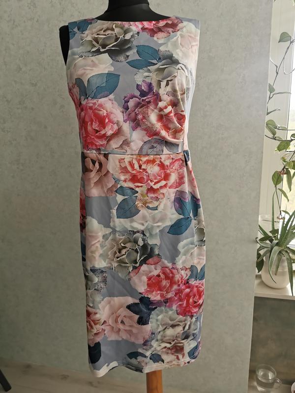 Элегантное платье с цветочным принтом. Большая м, или л, у меня с-м свободная, и так не красиво. Надо 46-48 Украинский размер. Состояние отлично.