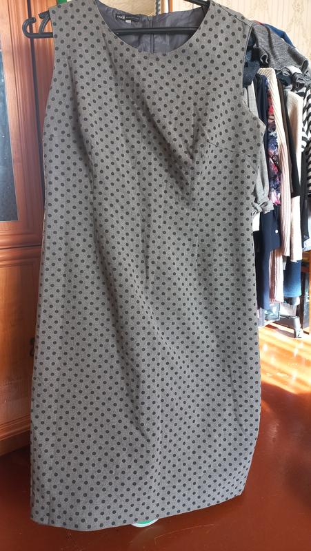 платье в горошек. классический крой, сзади разрез 18см ОГ96 ОТ90 ОС104 длина 100 недостаток на последнем фото- порваная подкладка сбоку и следы от дезодоранта подмышками