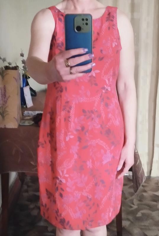 Літня сукня на підкладці в ідеальному стані розміру М/ L, 46-48. Бірки відрізані. Замір: Пог -48 см, Пот- 45 см, Поб- 55 см, довжина сукні - 97 см. Сукня не тягнеться, має застібку позаду на блискавку. Тканина: підкладка - поліестер, верх сукні тканина - шифон.