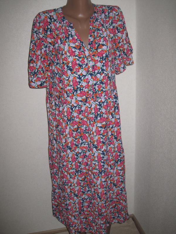 Ярусное вискозное платье Marks&Spencer р-р12 цветочный принт , вискоза шелковистая,застежка до талии, ПОГ52, ПОТ48, ПОБ62. до талии42, длина 120, идеальное состояние, 430грн