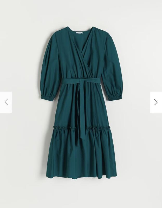 reserved сукня міді плаття платье ізумрудно зелене xs s baby doll з рукавами буфами Нове, з біркою По бірці xs, підходить на xs s, талія на резинці