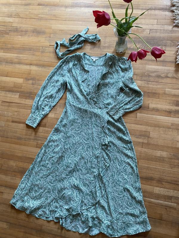 Цікавий принт На запах Рюшки по всій довжині Збоку потаємна застібка Є ремінь до сукні