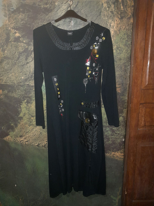 Виробник: Інший виробник Тип одягу: Плаття Плаття шикарне,нове без бирки.Тепле з вишивкою.Розмір 50-52.Дуже струнким.Колір насичений чорний.