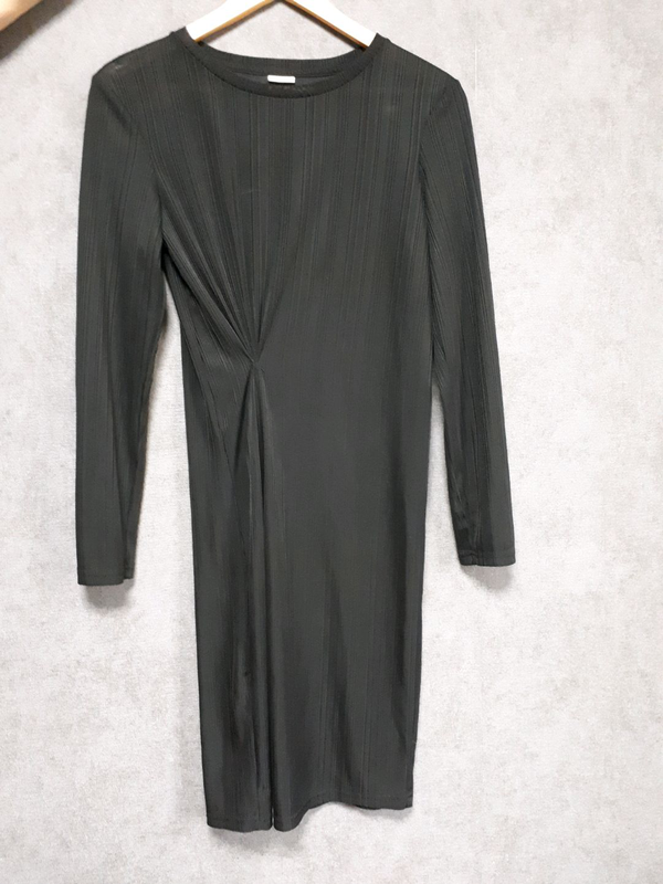 Виробник: Інший виробник Тип одягу: Плаття Плаття фірми Jacqueline de Yong з драпіруванням попереду, довжина - до колін, рукав довгий. Вказаний розмір m, але підійде на s. Стан: відмінний, без дефектів. Заміри: довжина - 93 см, довжина рукава від плечового шва - 61 см, довжина плечового шва - 9 см. Ширина в грудях - 46 см, ширина в талії - 35 см, ширина в стегнах - 46 див. Тягнеться, трикотажне, досить тонка тканина в рубчик. Склад: 95% поліестер, 5% еластан.