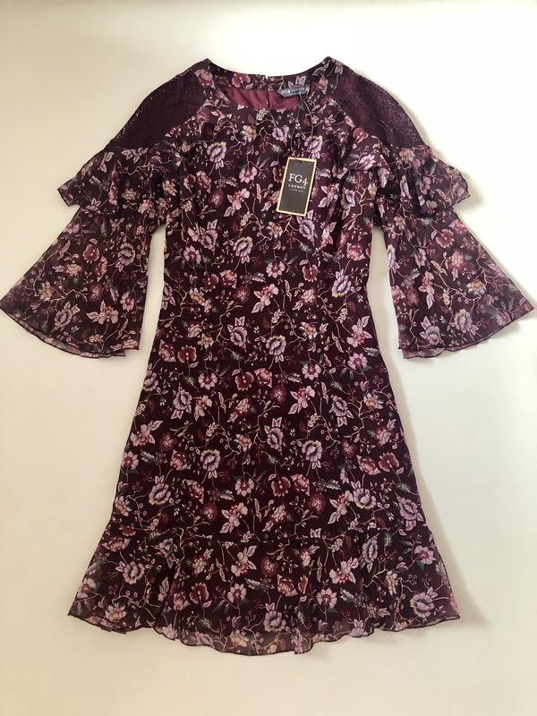Цветочный, струящийся шифон на трикотажной подкладке, Длина по спинке 88, пог 46, пот 38, поб свободно до 55, плечо вместе с рукавом 51