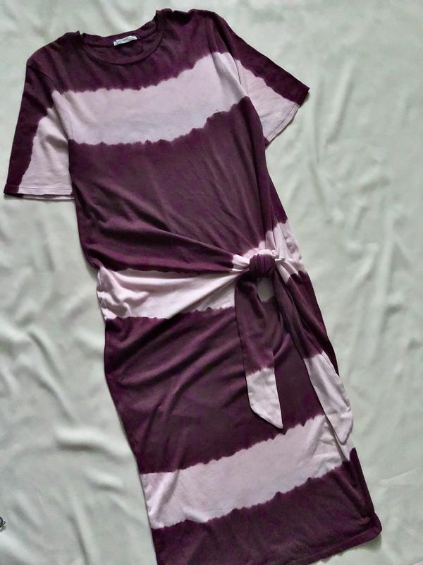 Трикотажна сукня міді з якісного трикотажу ( 97% бавовна, 3% еластану) в новому стані, але витачки на плечах не рідні, одна з них ховає маленьку дірочку, але все виглядає досить органічно і в очі не кидається. Довжина 127 см, Ног. 52 см і тягнеться, Нот. 51 см, Нос. 52 см і тягнеться.