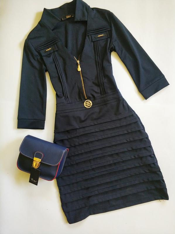 Синя еластична облягаюча сукня