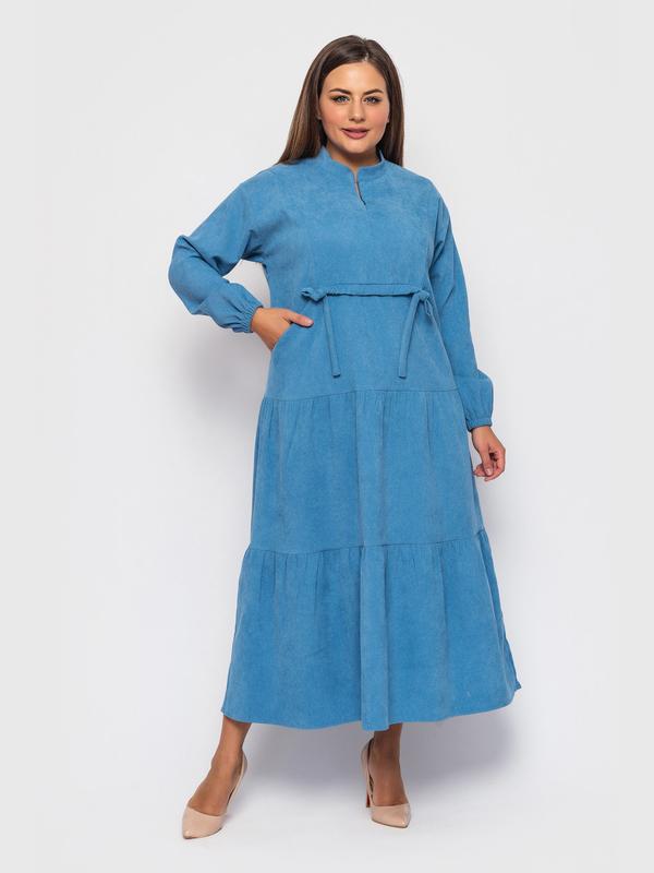 Элегантное платье свободного кроя со спущенной линией плеча. Застегивается в области декольте на потайную молнию. Юбка-каскад смотрится эффектно и придает образу женственность. Под грудью кулиса, от которой уходят глубокие карманы. Манжеты рукавов собраны на резинку. Проходит на грудь до 125 см Длина изделия: 123 см Длина рукава от горловины: 71 см Параметры модели на фото: 106*80*115 см