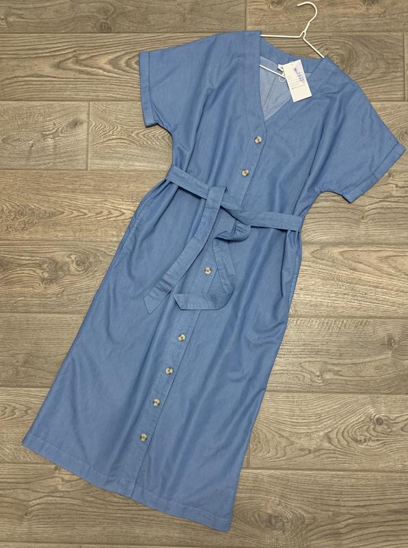 Платье-рубашка миди английского бренда Warehouse р. 12/L/40, на пуговицах, пояс. ПОГ 56 см ПОТ 54 см ПОБ 56 см Рукав от воротника 33 см Длина 119 см.