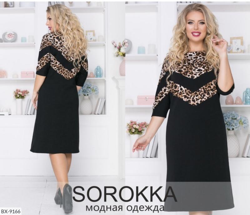 Сукня BX-9166 мод793 Розмiри: 50, 52, 54, 56 Тканина:2? нитка + леопардовий трикотаж