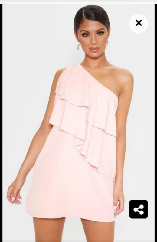 Свободное платье с оборками на одно плечо от английского бренда PrettyLittleThing. Оригинальный, новый, с биркой Длина 79 см Пог 46см Пот49см Ширина по низу 60см Это максимальные замеры, она ложится свободно
