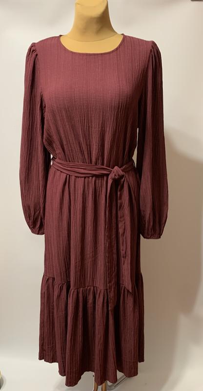 Сукня довжини міді кольору припиленого малинового створює ніжний та елегантний образ для виходу у "світло" і не тільки. Вільний силует з рюшею по низу і пишними рукавами.Можна підкреслити талію за допомогою тканинного пояса або залишити сукню вільною.Довгий рукав призбираний по низу на резинці,має круглий виріз горловини і по спинці застібається на гудзик.Тканина фактурна з жатим ефектом,тягнеться,підійде і на більший розмір. Вказаний розмір eur 38/us 6/M Підійде орієнтовно на 46/48р 💕 Орієнтуйтесь на виміри. Довжина від плеча 129 см,до талії 43 см Плечі 36 см Напівобхват грудей 54 см тягнеться до 58 см Напівобхват талії 52-60 см. Напівобхват стегон 55-62 см Рукав 62 см,ширина 24 см ФОТО на ТІЛІ НЕ РОБЛЮ ВАЖЛИВО! Перед покупкою прошу ознайомтеся з умовами у розділі "про мене" Речі Cток та Second Lux! Склад: 100% поліестр Відправлю Новою поштою, Укрпоштою, оплата на карту банка. Колір виробу переданий максимально реально, може незначно відрізнятися через різну кольоропередачу на пристроях, що переглядаються. Даю детальну інформацію про товар, тому відповідальність за вибір речі лежить повністю на Вас. Art 4738.38