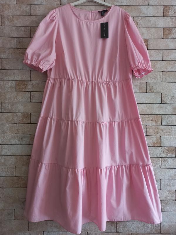 Красиве повсякденне плаття-міді з призбираною спідницею від бренда New Look. Фасон оверсайз. Підійде на розмір 52-54. Колір рожевий. Склад: 100% — бавовна.
