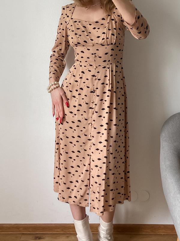 Изящное платье миди 💃🏼 Материал: дна креп Состав 50% вискоза, 50% полиэстер Размеры: S, M, L Замеры: Полуобхват груди: S - 43 см; M - 45 см; L - 47 см Полуобхват талии: S - 33 см; M - 35 см; L - 37 см Полуобхват бедер: S - 55 см; M - 57 см; L - 59 см Длина платья: S - 117 см; M - 118 см; L - 119 см Длина рукава: 54см На модели размер М