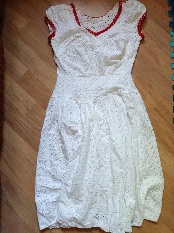 Платье из прошвы в идеальном состоянии. Длина - затвор колена. С боку есть молния.
