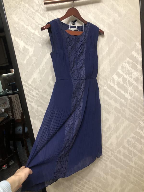 Платье синего цвета в складку с кружевом, с подкладкой в очень хорошем состоянии, размер XS/S