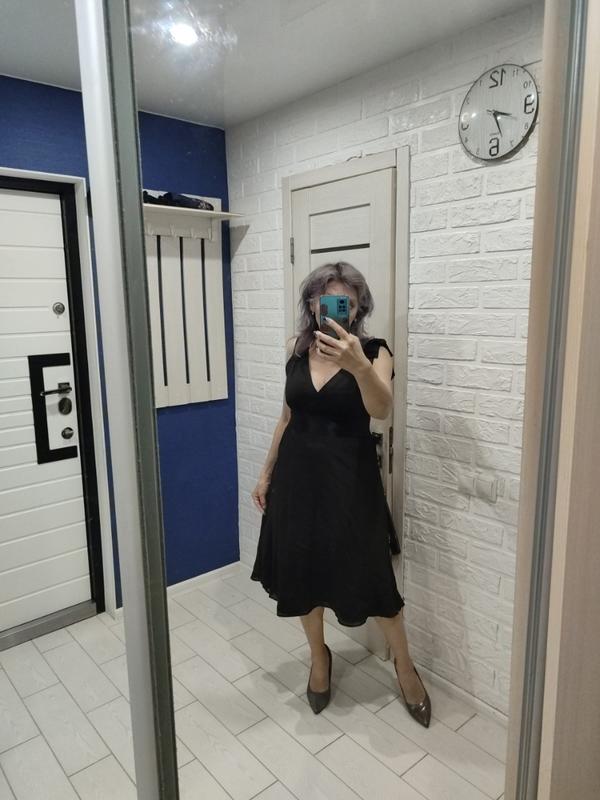 ДОВЖИНА 109 см, ПОГ 48 см, ПОТ 42 см(талия завышенная), ПОС 58 см. Замеры выполнены ткань в спокойном состоянии, которая не тянется состав ткани 80% лен,20% шелк, со стороны есть молния