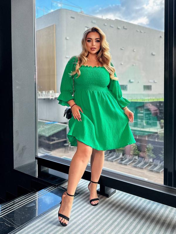 Мега популярное летнее платье из муслина💓✅ Дышащая и легкая ткань лучше всего подойдет для жаркой погоды☀️ ▪️Модель с лифом-резинкой, горловина на резинке, верх облегающий, юбка свободная💓 ▪️Рукава длинные, снизу на резинке с оборочкой💫 Мод: 1410ВШ 💵Цена: 940 грн Размеры: 48-50, 52-54, 56-58 Ткань: муслин (натуральная 100%) Цвета: зеленый, черный, малина 📌Замеры: • 48-50: ОГ-106; ОС-свободные • 52-54: ОГ-116; ОС-свободные • 56-58: ОГ-126; ОС-свободные Длина-85 Наложенный платеж по перед оплате 150 грн