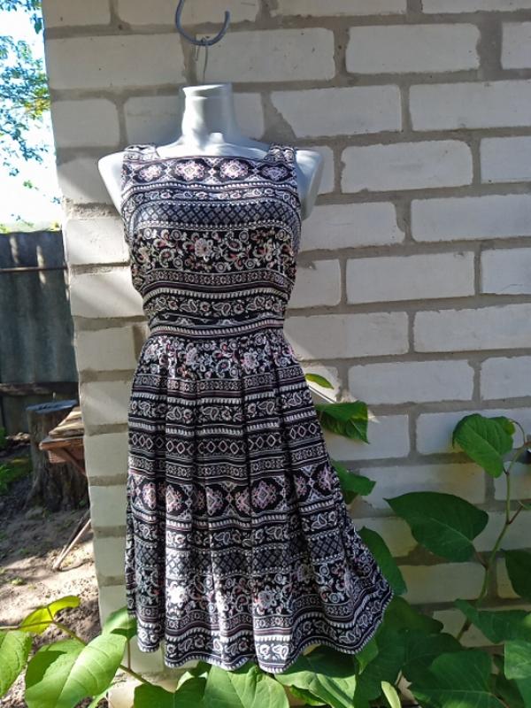 длина 88, пог 40,талия 36,поясок длинный, низ пышный в складки, по спине молния, вискоза,стан идеален.