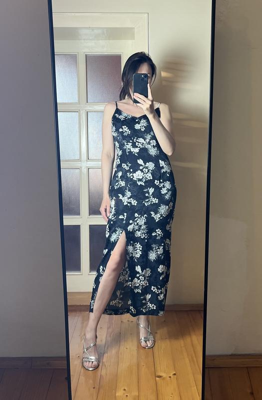 Квітчаста сукня міді з розрізом на ніжці Віскоза Б/у стан 5- Зашито 2 см на боковому шві (не помітно)