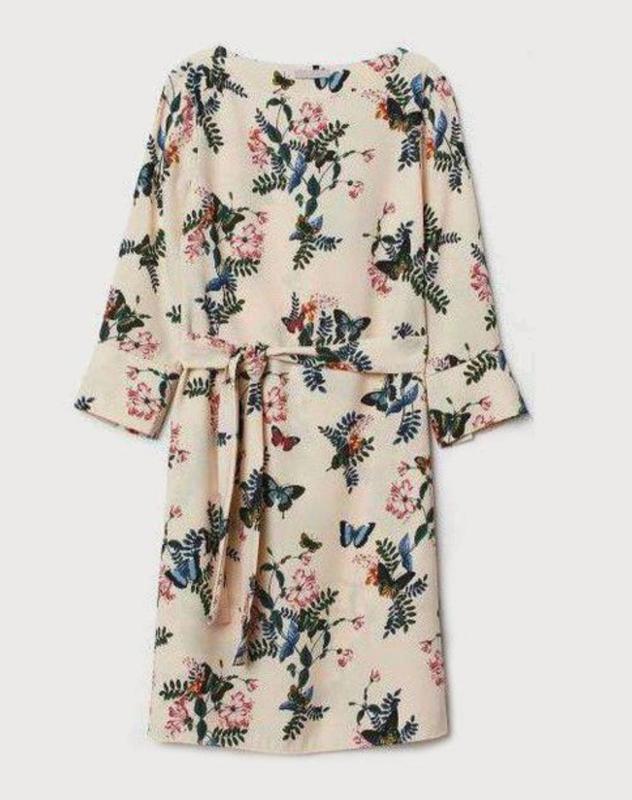 Платье-миди H&M, размер 44/16/175/100А, бежево-молочный тон, бабочки и цветочный принт, в очень хорошем состоянии, но без пояса! ткань 100% полиэстера, имеет дополнительные пуговицы. Есть небольшие зацепки на рукавах. BSD ориентироваться по замерам: длина изделия 98 см, плечи 39, рукава 50 см, ПОГ 54 ПОТ 54 ПОБ 59