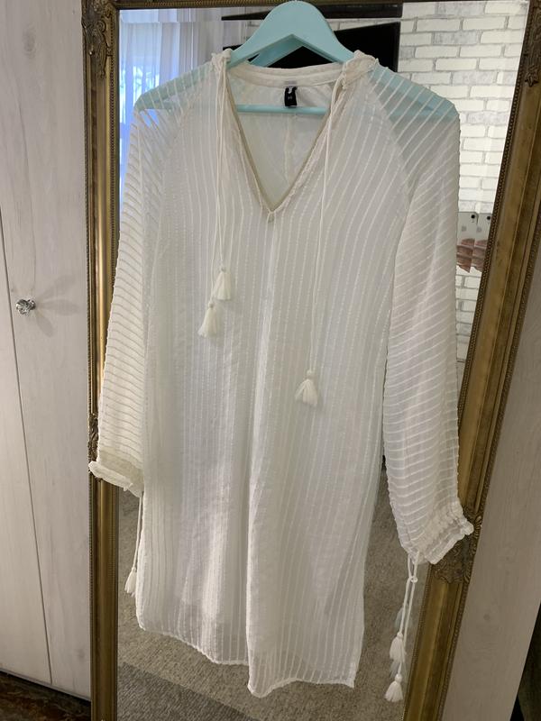 Прекрасное нежное платье, необычное и романтичное! Состав полностью натуральный, см фото! Размер указан XS, но на мой М сел чудесно! По груди 45, бедра 48, рукав от горловины 71, длина 101 см