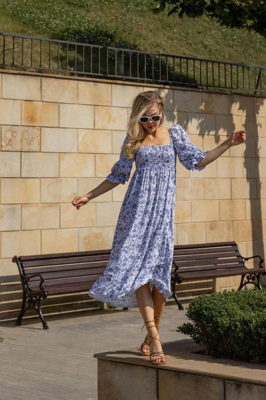Яркое летнее платье-миди с рукавами-фонариками и резинкой на груди. Модель выполнена из натуральной ткани штапель, которая отлично подходит для жаркой погоды, пропускает воздух, легкая и приятная к телу. Платье представлено в едином размере XS-S: грудь максимум 94 см, талия и бедра свободные. 🎁Отправка НП, наложка по подписке 150 грн
