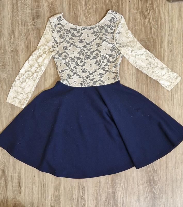 платье s размера, до колена, очень красиво подкрашивает талию и имеет на спине вырез.