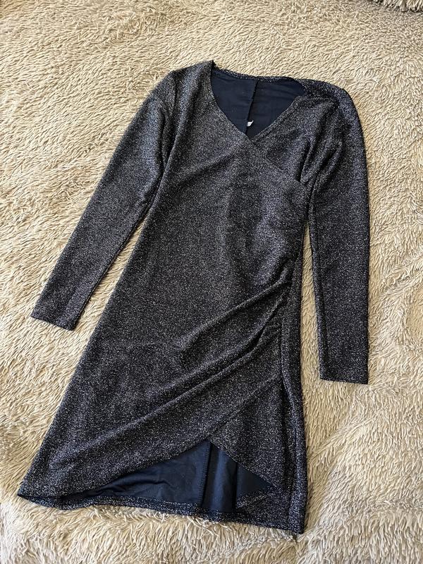 Шикарне плаття чорно-сірого кольору. На тілі виглядає шикарно, с вирізом для декольте та збоку трохи зібране. Розмір м. Для додаткових фото на тілі надішліть мені повідомлення. 💖
