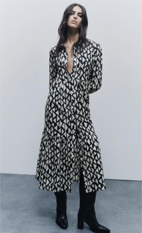 Бренд: Zara Річ нова, з етикетками, оригінал! Нове плаття у розмірі S, (більшомірить,підійде від s до хл) 100% БАВОВНА тканина тонка і легка Довжина по спинці 127 см Пахви ПО 54 см Талія ПО 53 см Бедра вільно Рукав від плеча 56 см Плечі 38 см Довга бавовняна сукня з сорочковим коміром і рукавами нижче ліктя. Застібається на ґудзики спереду. Волани внизу.