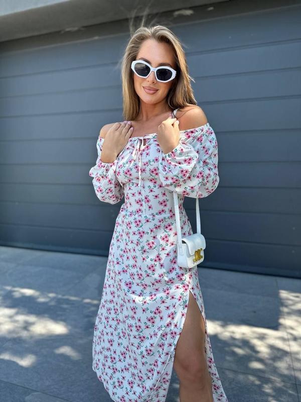 Отличное качество ткань и пошив Элегантное весеннее платье с роскошным разрезом Размер: 42-46 универсальный Ткань: Софт премиум класса Цвет: Белый, розовый