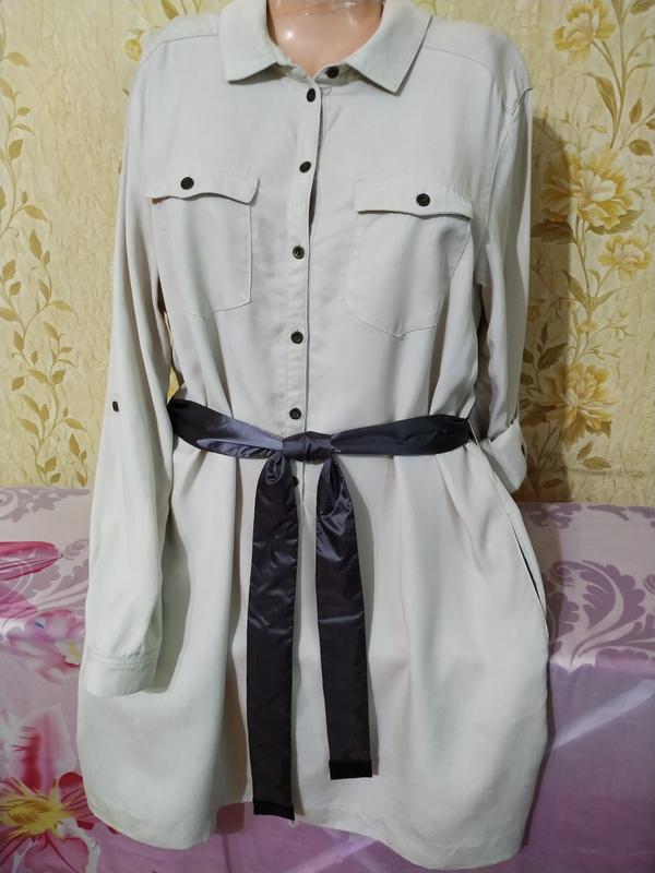 Плаття Розмір вказано 16 Ширина груді 58см Крій вільний В самому низу 64 см Є кишені Тканина Lyocell Не дуже тонка М'яка Приємна до тіла Колір бежевий Ідеальний стан Заміри на останніх фото Орієнтуйтесь на заміри