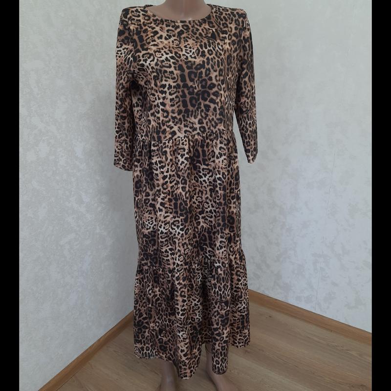 Леопардовое платье свободное ярусное.Тягнется. Замеры: ПП 40 ПГ 54 ПТ 52 ПС 75 Длина 125 Рукав 45