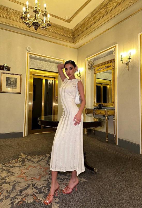 Вязаное трикотажное платье миди стилизовано декоративными рваными деталями. Модель с заниженной линией плеча, длинным прямым рукавом и круглым вырезом. • Размер универсальный • Длина 130 см • Состав 100% коттон • Цена 1450 грн 2679