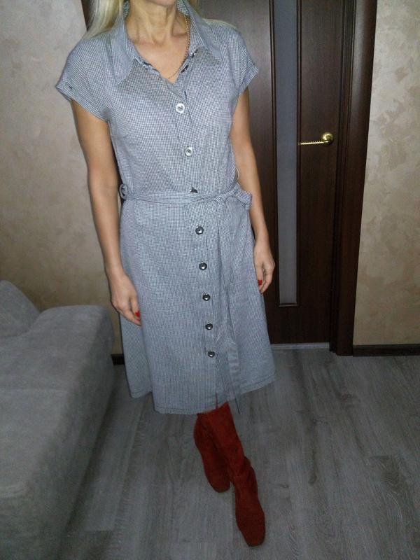Трендовое миди платье-рубашка на пуговицах, с пояском бренда Real form london.👗Актуальный принт. Выглядит супер .Застёгивается на пуговки .Есть поясок .Ткань приятная .Размер указан 12,ориентируйтесь на замеры: Пог 45-46 см.(есть выточки) Пот 43 см. Поб 60 см. Длина 107 см. Пожалуйста, совершайте покупку обдуманно, уточняйте все детали перед покупкой. С готовностью отвечу на интересующие вопросы. ⚠️ Обмена и возврата ,примерки нет . Доставка: Отправка Новой почтой каждый день после обеда.(кроме воскресенья) ❗️100% оплата на карту, не забывайте пожалуйста учитывать комиссию банка.❗️ - Наложки НЕТ! - Обмена и возврата нет.Примерки нет! - Товар ставлю на резерв на сутки, если оплаты нет, снимаю и могу продать первому покупателю, который обратился. - Подписывайтесь пожалуйста на мой профиль,если не хотите потерять понравившуюся вещь, так как через 3-7 дней она удаляется для перезагрузки