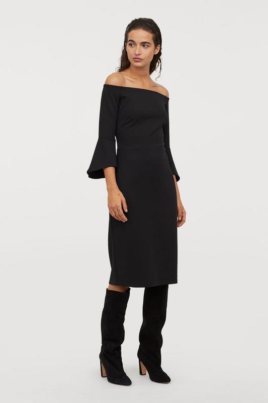 Платье H&M Размер - L Сукня практично нова, один раз одягала Цвет - черный, в жизни точно такой как на оригинальных фото с сайта Очень трудно делать фото черного цвета, смотри на фото с сайта Состав : 95% полиэстер +5% эластан Приятная к телу ткань, тянется, Модель очень не обычная Реальные замеры: ПО грудь - 50 см, но модель немного шире по груди, смотри фото оригинальные ПО талии - 43 см ПО стегна - 55 см Длина - 96 см