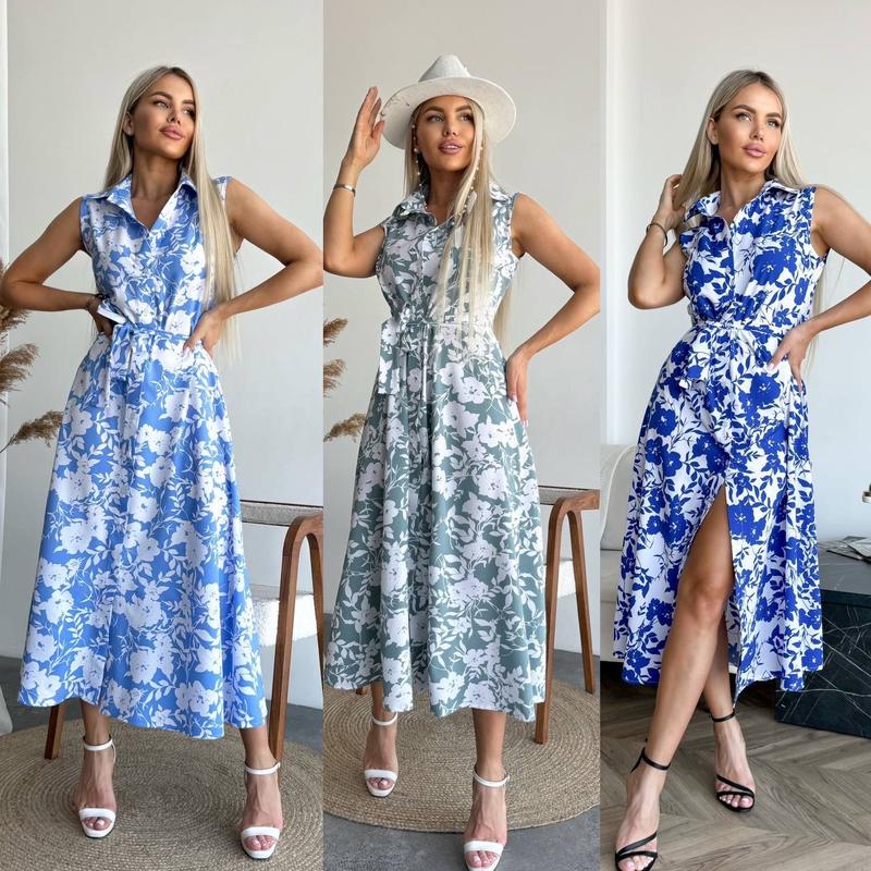 Модель 715 Женское платье длины миди Размерный ряд S,M,L,XL Ткань турецкий принтованный софт (очень приятный на ощупь ) Цвета черная основа+белый; синий, голубой, фисташка, трава и красный Застегивается платье на пуговицы, в комплекте пояс Супер качество Цена 660 грн
