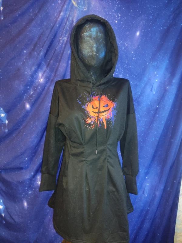 Готическое платье худи с капюшоном с тыквой джеком хеллоуин с заниженной линией плеча