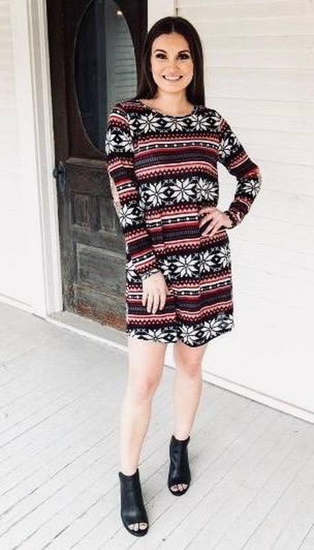 М'яке плаття з геометричним зимовим візерунком, кольорові смужки, гарно сідає по фігурі, тепленьке, у складі 35% шерсть, дуже гарно виглядає. S/M, Indulgence London. Рукав 3/4. Заміри на фото. Одягала 1-2 рази. Стан - ідеальний.