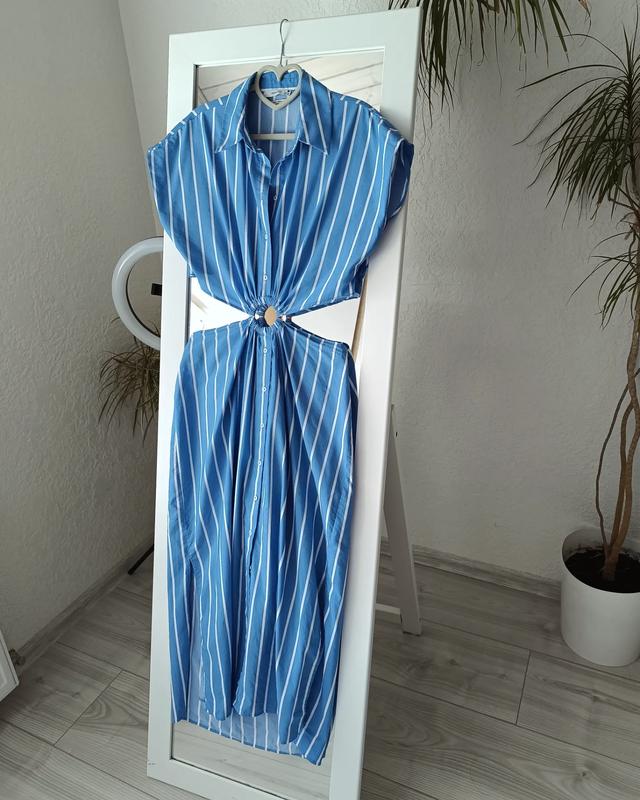 Хлопковое платье миди в полоску от Reserved💙🤍 Стильный крой, 100% натуральная, длина меди, состояние идеальное☝🏻, как новая! Размер 38(М) Замеры: Пог-49см; Пот-36,5см(тянется до 46см); Пос-59см; Длина 120см.