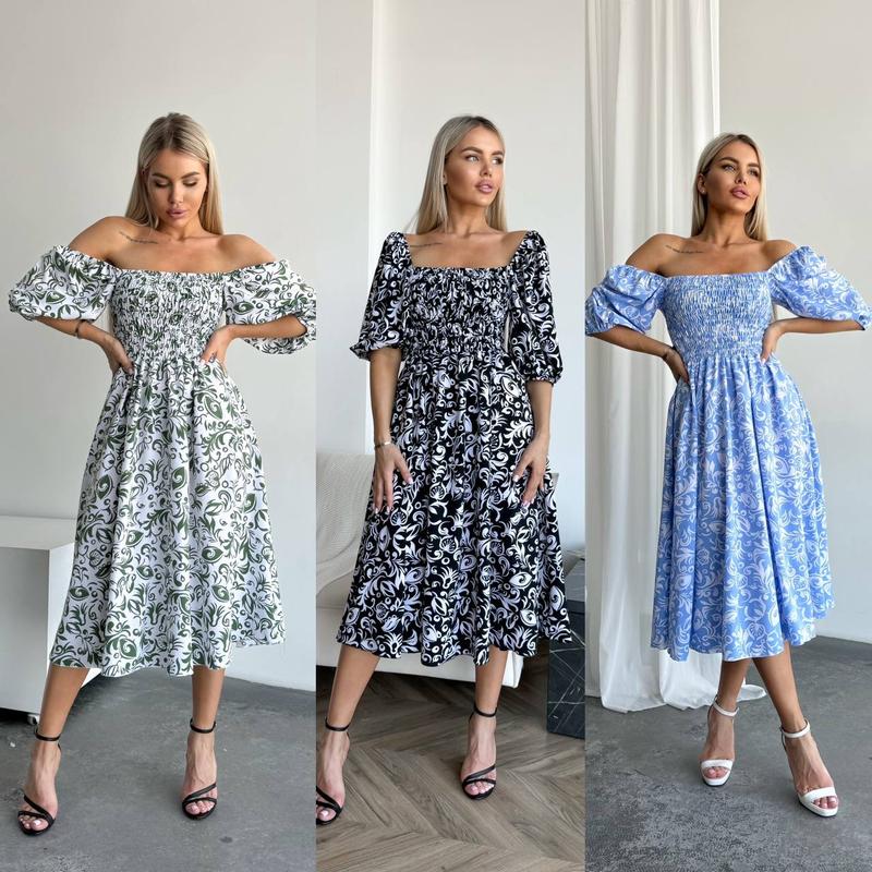 Женское платье Размерный ряд S,M,L,XL Ткань софт ( очень приятный на ощупь, не просвечивается) Цвета бело-черный, черный, голубой, малина,ментол, синий и хаки По переду резинка, за счет чего идеально садится по фигуре Цена 680 грн